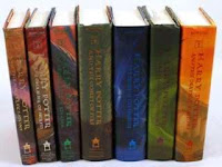 By the mid nineteenth century, another new trend had emerged: dust covers. Or 'book jackets' as we often call them now. Early dust jackets were printed cloth that was only meant to protect the novel from the place of production/purchase to home. At that time, the cloth (and later, probably once they realized how wasteful the cloth was, paper) would be disposed of. These early dust jackets were only meant to protect the book, but were quickly found to be excellent promotional materials. The use of dust jackets has persisted all the way to today, where they are common among most all hardback novels. If you're interested in learning more about the history of dust jackets, there's an entire website and museum collection devoted to them. Check it out at the British Library Dust Jackets Collection site. Probably the most well-known example of a modern use of dust jackets is the Harry Potter series. Most all readers own the hardback copies of these novels and can see the usefulness of the dust jacket.